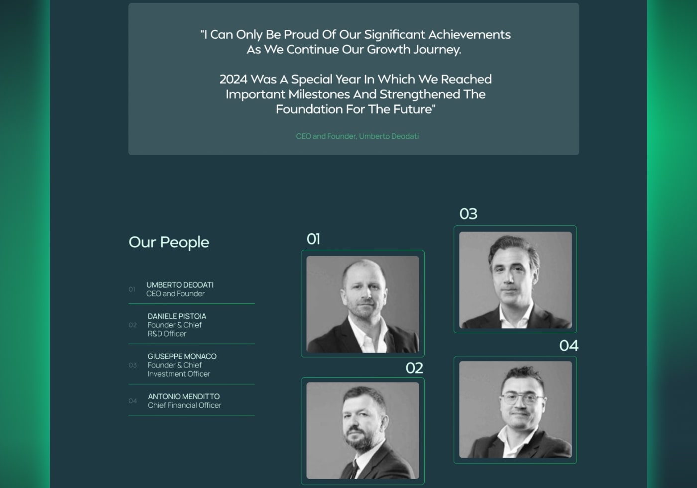 We designed a clean, corporate-style Figma prototype with clear data visualization, professional layouts, and a modern aesthetic. The design balances storytelling with credibility, ensuring investors, partners, and stakeholders can easily understand the company’s role in driving Italy’s green transition.